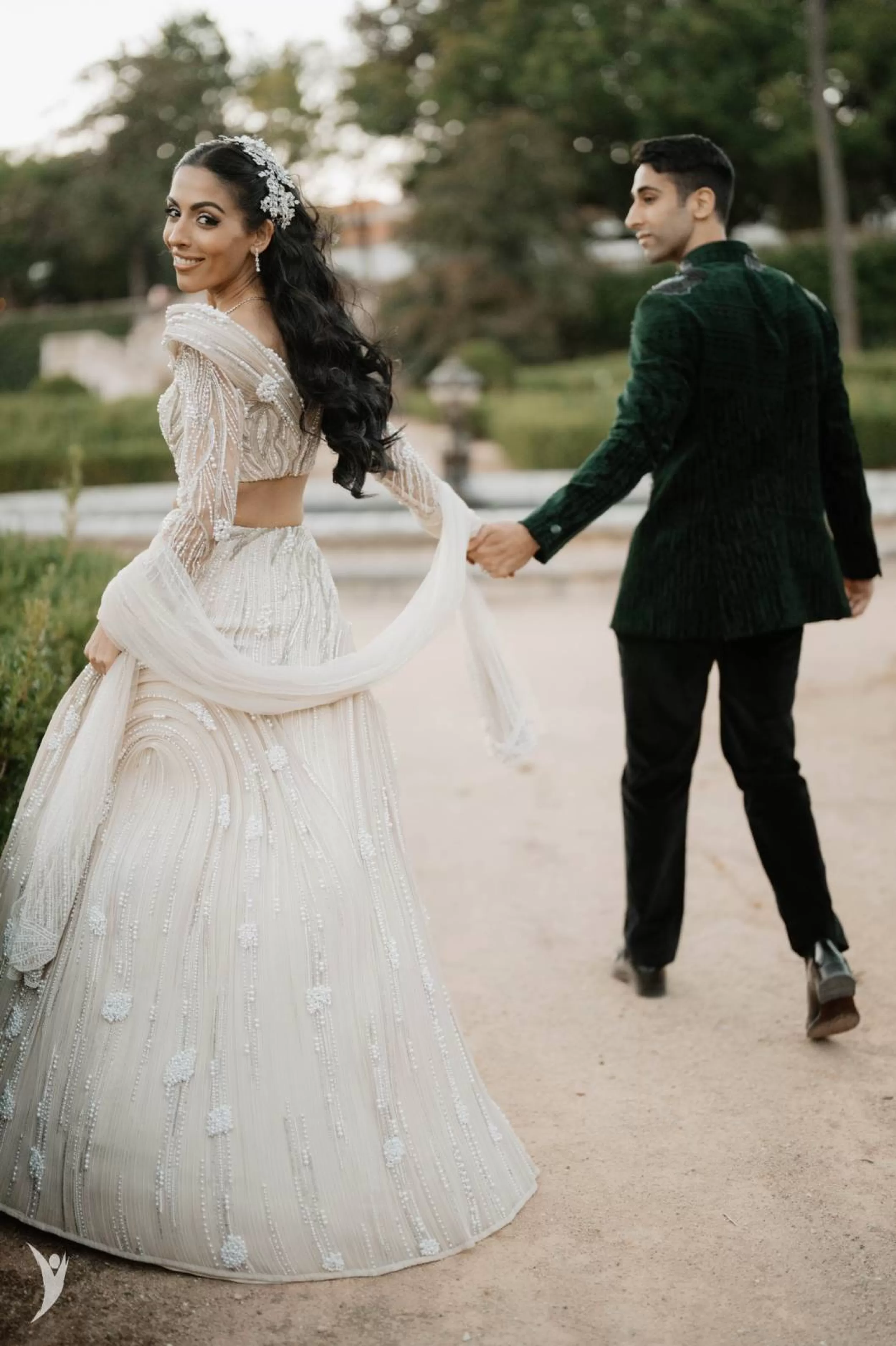 Denise and Sanjiv’s wedding combined old-world charm with modern sophistication. They chose an exquisite venue steeped in history, arriving there we knew the next couple of days will be like chapters from a story book. The festivities began with an intimate bridal shower that was nothing short of a high-fashion magazine spread with Denise looking every bit the vogue muse. The tone was set for what would become a truly dreamy wedding experience. The love between Denise and Sanjiv was palpable, echoed in every ritual and gesture. It was a love marriage that brought together two beautiful families, each moment filled with warmth and connection. Their wedding was especially magical—bathed in the golden hues of Lisbon’s skies, the setting sun made for the perfect light as they exchanged vows. The wedding was like a festival with a number of events in pre wedding celebrations. It felt like we were photographing a Bollywood dream—cinematic, lavish, and deeply emotive. And yet, it was always grounded in the real love story of Denise and Sanjiv. The wedding wasn’t just visually stunning—it was also high on entertainment. From swanky cars to dazzling fire and dance performances, the celebrations mirrored grandness. Yet, in every luxurious detail, the intimacy of Denise and Sanjiv’s bond remained the focal point—reminding everyone that the most extraordinary weddings are the ones rooted in love. One of our favorite moments was the gala dinner reception hosted under the stars. With champagne showers, twinkling lights, and heartfelt toasts, it was an evening that perfectly encapsulated the grandeur of the palace. The venue housed a piano that dated back to Napoleon’s times—a detail that made the atmosphere all the more timeless. It was a treat to document this union - a celebration that will live on, not just in pictures, but in the hearts of all who witnessed it.